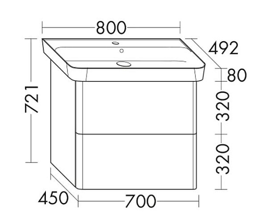 Тип товара Тумба c раковиной подвесная с 2мя ящиками