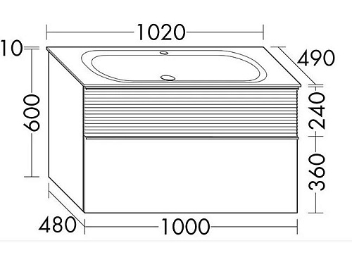 Тип товара Тумба c раковиной, подвесная с 2мя ящиками