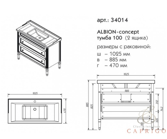 Тумба Caprigo ALBION CONCEPT 34014-TP812-B15B купить по доступной цене