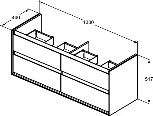 CONNECT AIR Тумба для раковины для подвесного монтажа, с 4-мя ящиками, система плавного закрытия, с крепежом. Для монтажа с раковиной CONNECT AIR Vanity 134 см E027201. Рекомендуется сифон Space Saving EE23033967 (заказывается отдельно).