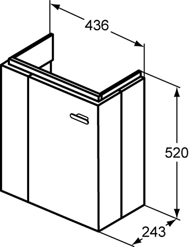 CONNECT SPACE Тумба - узкая проекция, глубина тумбы 25 см, настенный монтаж. Специальная L-форма двери, экономящая пространство, максимальное открытие 105?. Съемная полка на дверце для доступа без необходимости полного открытия. Плавное закрытие. Ручка в комплекте. Левая версия. Для монтажа с раковиной E136201.