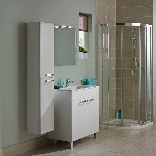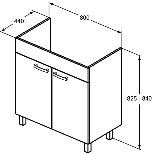 TEMPO Тумба для раковины с 2-мя дверцами, для напольного монтажа, система плавного закрытия, 2 ручки, 4 регулируемые ножки, с крепежным комплектом. Для монтажа с раковиной TEMPO 81 см E066901.