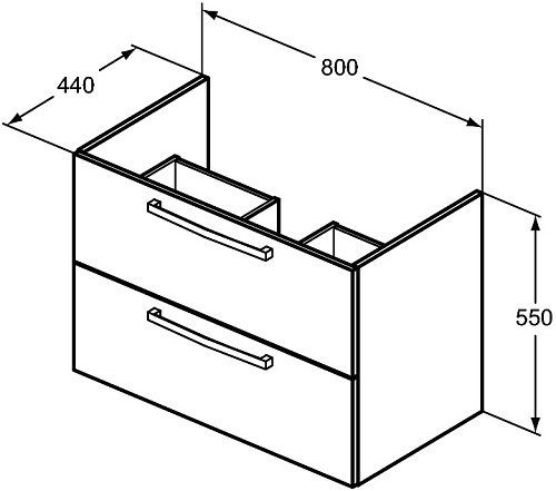TEMPO Тумба для раковины с 2-мя ящиками, для подвесного монтажа, система плавного закрытия, 2 ручки, с крепежным комплектом. Для монтажа с раковиной TEMPO 81 см E066901.
