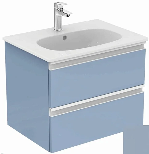 Тумба Ideal Standard T0050WI Tesi для раковины 60х44 см, подвесная, Matt Avio (серо-голубой матовый/ручка - светло-серый матовый)