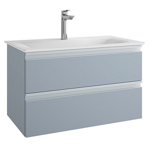 Тумба Ideal Standard T0051WI Tesi для раковины 80х44 см, подвесная, с 2-мя ящиками, Matt Avio (серо-голубой матовый/ручка - светло-серый матовый)