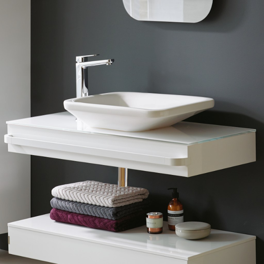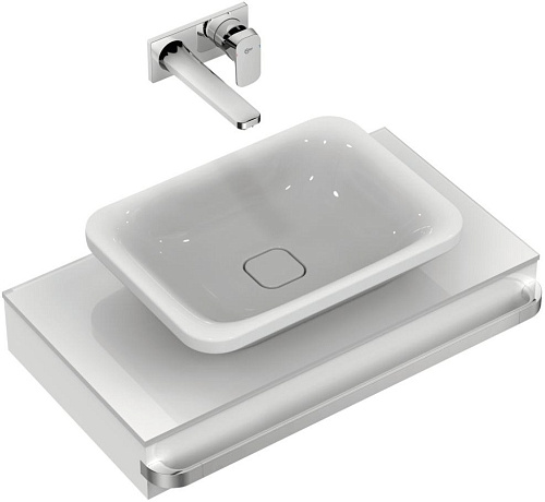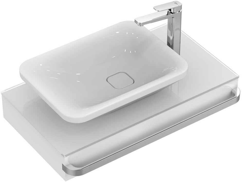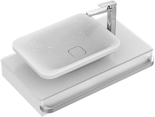 TONIC II Декоративный модуль для подвесного монтажа. Возможно установить ручку (в качестве полотенцедержателя). Ручка в комплект не включена. Для монтажа с раковиной TONIC II E21180 см K0879 (с отверстием под смеситель) или с си мметричной чашей TONIC II 55 см K0834 со стеклянной белой столешницей R4331SA и настенным смесителем или с аси мметричной чашей TONIC II 55 см K0833 со стеклянной белой столешницей R4335SA с отверстием под смеситель с удлиненным корпусом или соло без раковины в качестве полки, со столешницей R4322. Внимание: столешница заказывается дополнительно!
