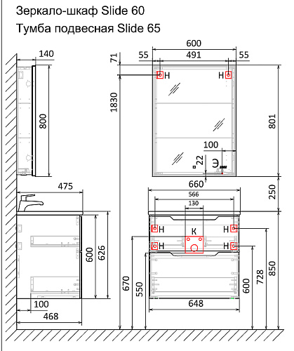 Тумба Jorno Sli.01.65/P/A Slide под раковину, подвесная 65х47 см, антрацит
