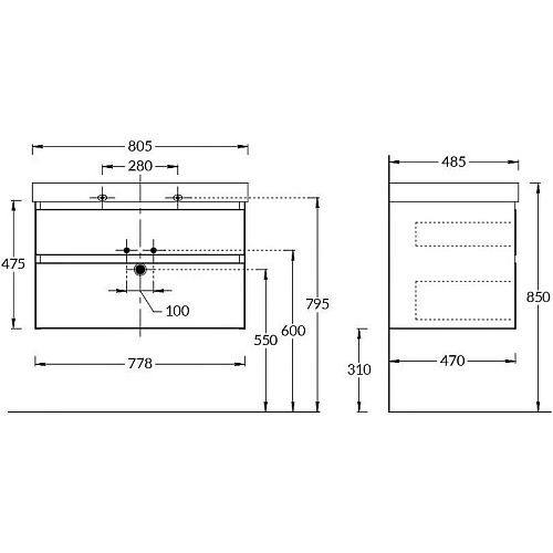 Тумба Kerama Marazzi CUB.80.2\WHT.M Cubo под раковину подвесная 80х47 см, белый матовый