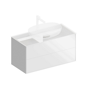 Подвесная тумба в белом цвете с двумя выдвижными вместительными ящиками, оснащенными системой открывания Push-to-Open. Сочетается со столешницами PLAZA Modern шириной 100 см. и накладными и встраиваемыми снизу раковинами