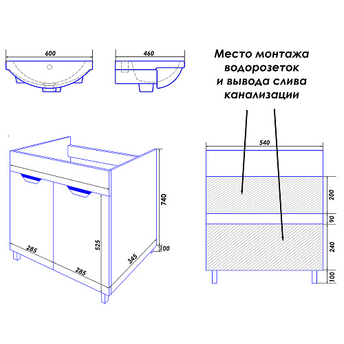 Тумба Loranto CS00070300 Стиль с раковиной, напольная, 60х28 см, белая