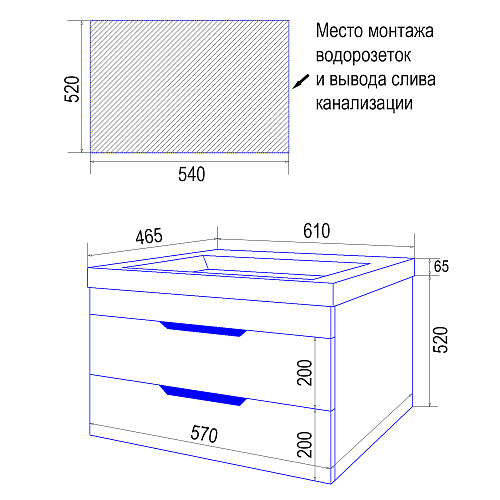 Тумба Loranto CS00070539 Соло с раковиной, подвесная, 60х48 см, белая
