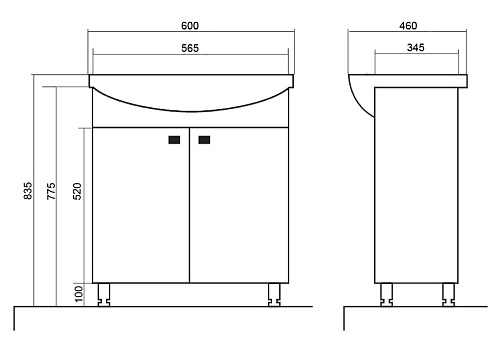 Тумба Loranto CS00079242 София с раковиной, напольная, 60х46 см, белая