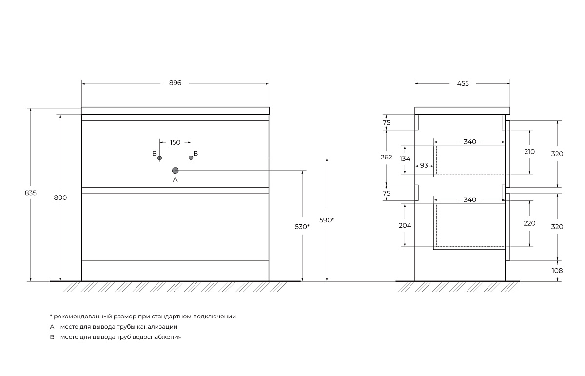 База BelBagno ALBANO-900-2C-PIA-RR под раковину 90х45 см, напольная, Rovere Rustico (дуб Rustico)