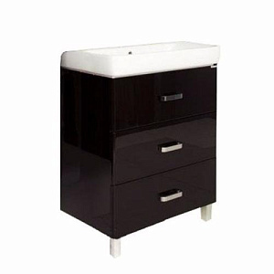 Сильная лаконичная модель тумбы AQUATON Америна 80 М с тремя ящиками имеет ширину 80 см и выполнена в элегантном чёрном глянцевом цвете. Корпус изготовлен из влагостойкой ЛДСП, а фасад - из высококачественной МДФ. Модификация на двух изящных ножках удобна для ванных комнат, где нельзя использовать подвесную мебель. Направляющие нижнего крепежа обеспечивают жёсткое и надежное крепление ящиков, а встроенные доводчики гарантируют их бесшумное и плавное закрывание. Дополнительно организовано нижнее подключение труб водоснабжения и канализации. Корпус и фасады покрыты полиэфирной краской ультрафиолетового отверждения, обеспечивающей дополнительную защиту от влаги.