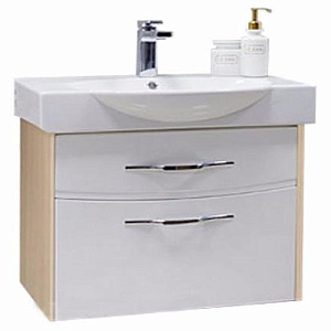 Стильная и современная тумба под раковину Инфинити 76 ясень коимбра отличается вместительностью и функциональностью. Подвесная модель привлекает внимание гармоничным сочетанием отделки корпуса из влагостойкой ЛДСП в оттенке ясень коимбра и белых глянцевых фасадов из МДФ. Тумба имеет два ящика с полным выдвижением, которые оснащены системой плавного закрывания. Фасад украшают изящные ручки европейского производства.