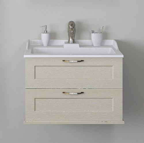 Подвесная тумба под раковину Леон 65 от бренда AQUATON в благородной отделке бежевый дуб создана для любителей классического дизайна, но при этом предпочитающих современные материалы. Корпус и фасады выполнены из высококачественной МДФ, покрытой матовой пленкой с фактурой под натуральное дерево. В тумбе установлены два ящика с системой плавного выдвижения и доводчиками. Классическую эстетику модели подчеркивают изящные ручки от европейского производителя.