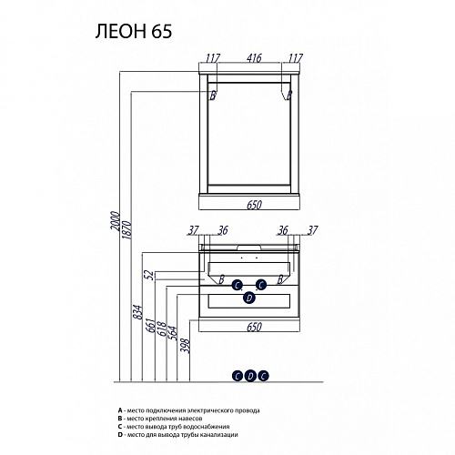 Тумба Акватон 1A187001LBPR0 Леон под раковину, 65х45 см, дуб бежевый