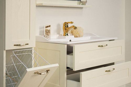 Подвесная тумба под раковину Леон 65 H от бренда AQUATON в благородной отделке белый дуб создана для любителей классического дизайна, но при этом предпочитающих современные материалы. Корпус и фасады выполнены из высококачественной МДФ, покрытой матовой пленкой. В тумбе установлены два ящика с системой плавного выдвижения и доводчиками. Классическую эстетику модели подчеркивают изящные ручки в отделке бронза от европейского производителя.