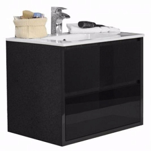 Тумбу под раковину Акватон Римини 60 отличает безупречное качество исполнения и строгий ультрасовременный дизайн. Фасад модели имеет черную глянцевую поверхность, минималистичный облик которой не нарушают декоративные элементы и ручки. Этот изысканный  Цвет идеален на фоне светлой отделки ванной комнаты. Размеры тумбы небольшие, 59,6x50x44,5 см.    Конструкция состоит из двух больших выдвижных ящиков, оснащенных механизмом демпфирования, который обеспечивает плавное закрывание.    Установка тумбы производится подвесным способом с помощью усиленных кронштейнов.    Дизайн модели разработан с учетом оснащения раковиной Roca Victoria Unik 60, изготовленной известной испанской компанией из качественной керамики.    На дне ящиков лежат специальные резиновые коврики, не дающие скользить предметам внутри.    Водопроводные трубы подключаются снизу.