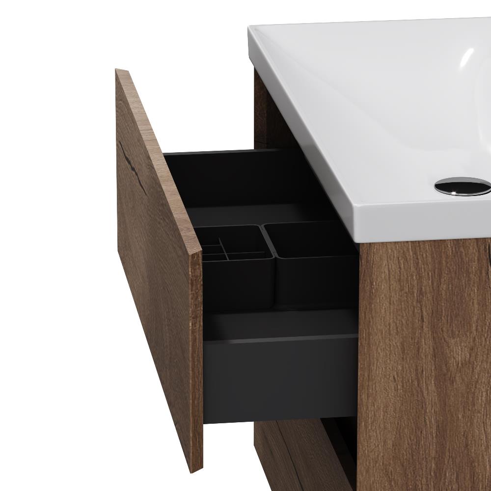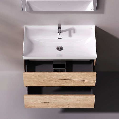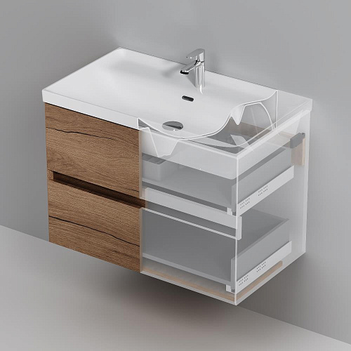 Подвесная база Above от AM.PM — баланс форм в актуальной минималистичной эстетике с утонченным силуэтом. Коллекция Above играет с пространством создавая ощущение лёгкости и простора. Это достигается за счет аккуратного запила фасада и корпуса под углом 45°. Каждая линия работает на эффект невесомости и создаёт ощущение простора даже в компактной ванной комнате. Дизайн разработан студией DanelonMeroni (Великобритания / Италия) и отражает философию коллекции — максимум визуального эффекта без лишних деталей. Выдвижной ящик из ЛДСП толщиной 12 мм имеет антискользящее покрытие. Съёмный органайзер в комплекте позволяет рационально организовать пространство а пластиковый обвод сифона сохраняет полезный объём. Направляющие Pull-out с механизмом Soft Close обеспечивают плавное и бесшумное закрывание превращая ежедневное использование мебели в приятный ритуал. Покрытие под текстурированное дерево разработано эксклюзивно студией DanelonMeroni. Тёплый глубокий цвет и выразительный древесный рисунок подчеркивают архитектурное настроение коллекции придавая интерьеру современный и премиальный характер на долгие годы. ""