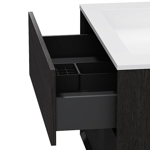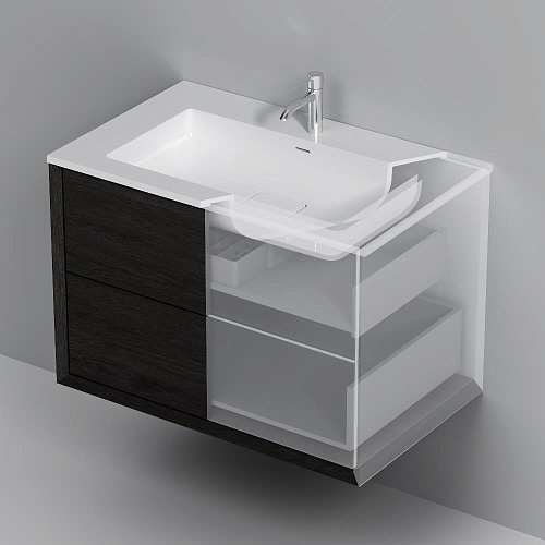 Подвесная база под раковину Libre — современный минимализм в мебельной линейке AM.PM. Разработанная студией DanelonMeroni (Великобритания / Италия) коллекция Libre переосмысливает современный минимализм через призму итальянского дизайна воплощая философию максимального визуального эффекта без лишних деталей. Архитектура корпуса — одна из ключевых особенностей модели. Боковины толщиной 22 мм с аккуратным запилом под углом 45° формируют тонкий выверенный фрейм подчёркивающий чистоту линий и сдержанную изящность тумбы. Функциональность продумана до мелочей. Выдвижной ящик из ЛДСП толщиной 12 мм сохраняет баланс между прочностью и визуальной лёгкостью а антискользящее покрытие внутри делает хранение более аккуратным. Съёмный органайзер входящий в комплект обеспечивает удобную организацию хранения при этом пластиковый обвод сифона позволяет сохранить максимум полезного объёма. Направляющие Push-to-Open с синхронизатором позволяют открывать ящик лёгким нажатием в любой точке фасада. Цвет «Миланский дуб» разработан эксклюзивно студией DanelonMeroni. Натуральная текстура и глубокие оттенки подчеркивают архитектурное настроение коллекции придавая интерьеру современный и премиальный характер на долгие годы. ""