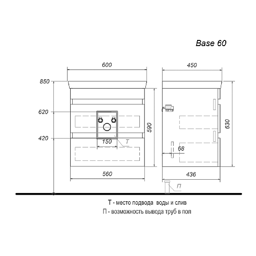 Тумба под раковину Aquanika BASE 60 AQB584352RU116 58,5х43х52,5 см., цвет - дуб золотой В конструкции используются направляющие Boyard, с функцией частичного выдвижения