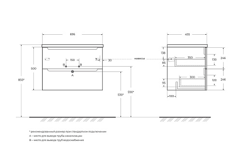 База BelBagno ETNA-700-2C-SO-RN-P под раковину 70х45.5 см, подвесная, Rovere Nature (натуральный дуб)