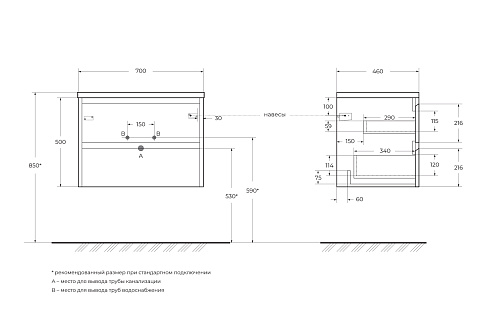 База BelBagno KRAFT-700-2C-SO-BO под раковину 70х46 см, подвесная, Bianco Opaco (белый матовый)