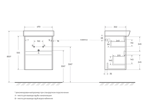 База BelBagno NEON-500-2C-SO-PB под раковину 50х35 см, подвесная, Pino Bianco (белая сосна)