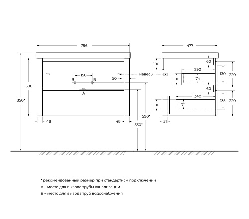 Тумба под раковину Cezares Relax RELAX-800-2C-SO-GM