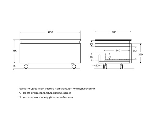 Тумба под раковину Cezares Slider SLIDER-800-1C-PI-NA-P
