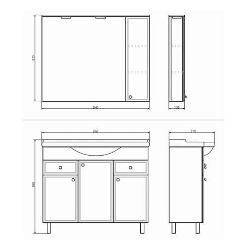 Оснащение Тумба под раковину, раковина, механизм доводчика.