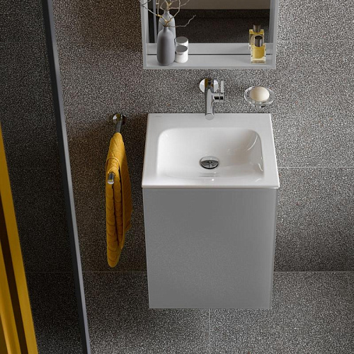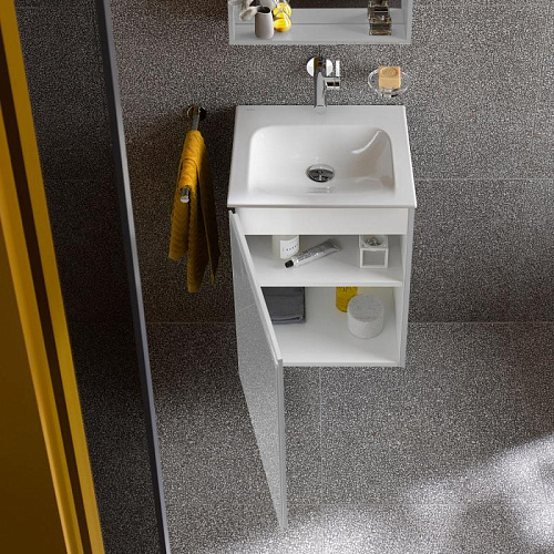 Тумба Keuco 32922290001 Plan под умывальник 46х38 см, петли слева, инокс матовый/инокс матовый
