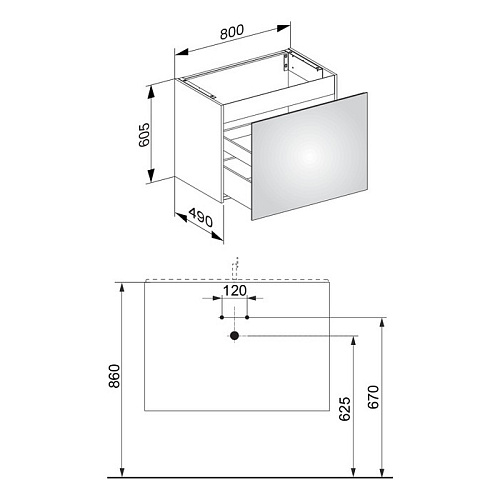 Тумба Keuco 32962290000 Plan под умывальник 80х49 см, инокс матовый/инокс матовый