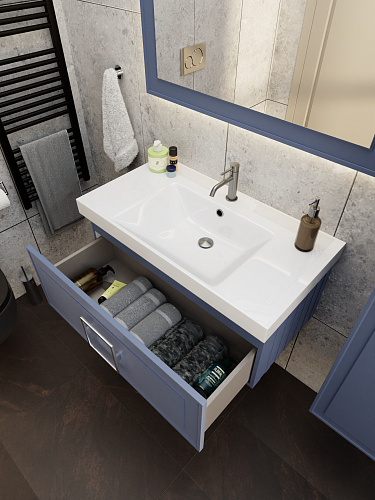 Система хранения Полноценный ящик без выреза под сифон, позволяет использовать максимум полезной площади, сам ящик выполнен в фантазийной цветовой гамме Лён антрацит