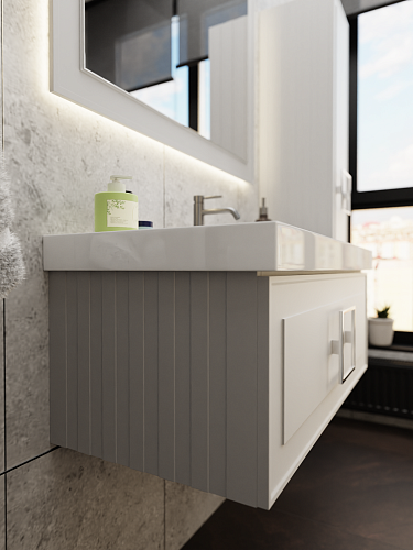 Дизайнеры LA FENICE знают, что подбор сантехники - это творческая задача. С мебелью коллекции Cubo решить задачу будет проще. Матовые фасады подвесных тумб и столешницы в различных цветовых гаммах помогут даже самому взыскательному покупателю создать индивидуальный интерьер. Изящные и утончённые фрезерованные фасады и боковины тумб в сочетании неповторимым цветом молочно-белая станут украшением любой ванной комнаты.