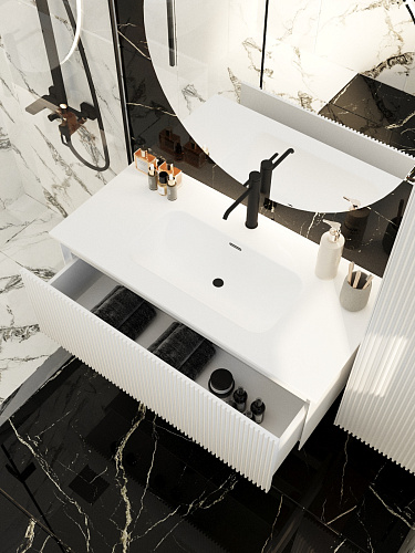 Новая коллекция Terra - это история долгого и кропотливого поиска уникального, ни на кого не похожего дизайна, в сочетании с современным качеством. Ультратонкая и идеально ровная раковина, механизм открывания push-to-open, плавное закрывание дверей и ящиков. Почувствуйте комфорт в своем доме с нашей новой стильной коллекцией.