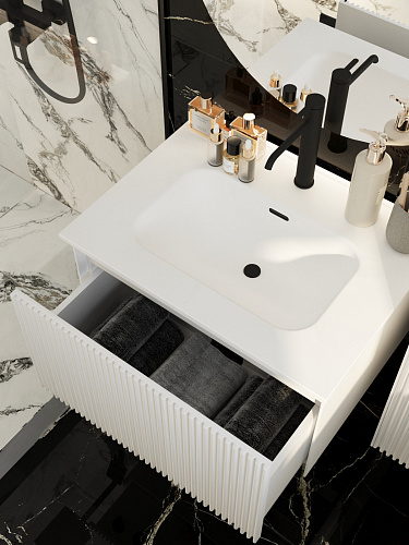 Новая коллекция Terra - это история долгого и кропотливого поиска уникального, ни на кого не похожего дизайна, в сочетании с современным качеством. Ультратонкая и идеально ровная раковина, механизм открывания push-to-open, плавное закрывание дверей и ящиков. Почувствуйте комфорт в своем доме с нашей новой стильной коллекцией.