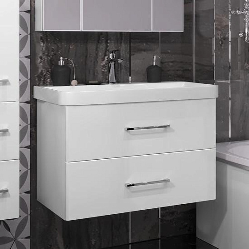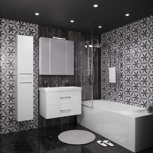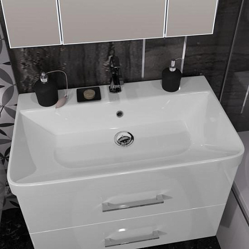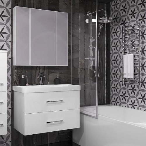 Коллекция подвесной мебели АРАБЕСКО строгая и лаконичная. Подвесная тумба прямоугольной формы с изящной ручкой, двумя выдвижными ящиками с системой «плавного закрывания», глубокой керамической раковиной и зеркалом. В коллекцию также входит подвесной пенал с двумя выдвижными ящиками и дверцей. Мебель из коллекции АРАБЕСКО покрыта влагостойкой эмалью с глянцевым лаком.