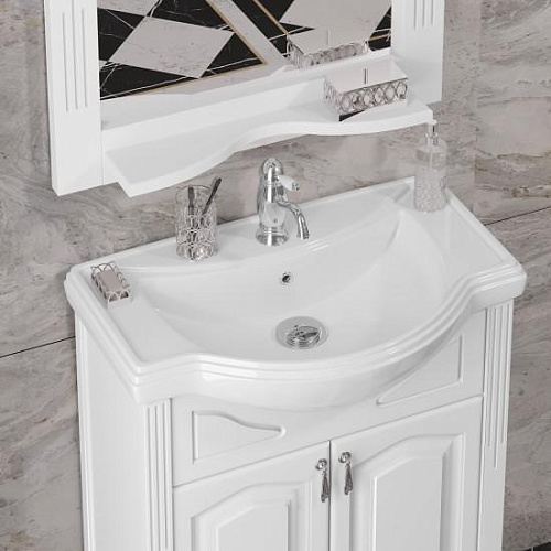 Коллекция РИСПЕКТО символизирует лучше традиции неоклассики в сочетании с необыкновенной функциональностью и простотой дизайна. Успех и уникальность коллекции формируется несколькими вариантами отделок, а также размерным рядом моделей и глубокой керамической раковиной. Завершенность стилю коллекции РИСПЕКТО придают сложные филенчатые фасады мебели. Несколько вариантов пеналов — узкий, стандартный (с бельевой корзиной) и двухстворчатый — удачно завершают комплектацию коллекции. Мебель оснащена механизмами плавного закрывания Hettich (Германия).