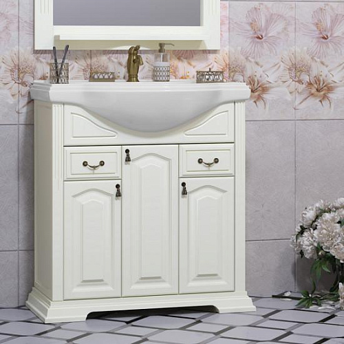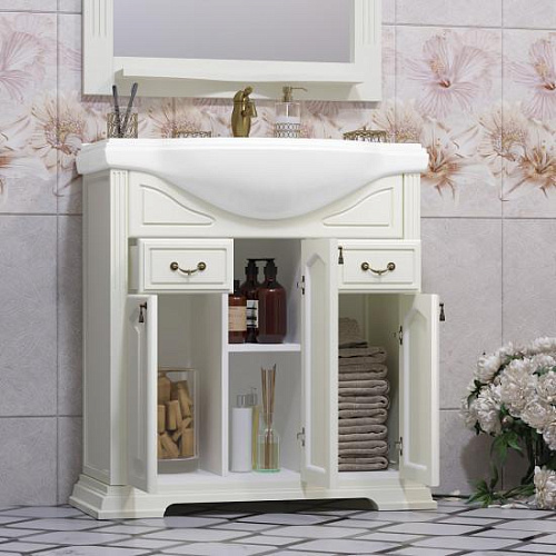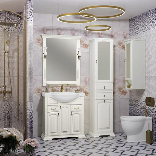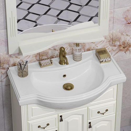 Коллекция РИСПЕКТО символизирует лучше традиции неоклассики в сочетании с необыкновенной функциональностью и простотой дизайна. Успех и уникальность коллекции формируется несколькими вариантами отделок, а также размерным рядом моделей и глубокой керамической раковиной. Завершенность стилю коллекции РИСПЕКТО придают сложные филенчатые фасады мебели. Несколько вариантов пеналов — узкий, стандартный (с бельевой корзиной) и двухстворчатый — удачно завершают комплектацию коллекции. Мебель оснащена механизмами плавного закрывания Hettich (Германия).