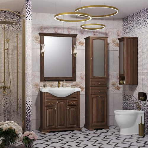 Коллекция РИСПЕКТО символизирует лучше традиции неоклассики в сочетании с необыкновенной функциональностью и простотой дизайна. Успех и уникальность коллекции формируется несколькими вариантами отделок, а также размерным рядом моделей и глубокой керамической раковиной. Завершенность стилю коллекции РИСПЕКТО придают сложные филенчатые фасады мебели. Несколько вариантов пеналов — узкий, стандартный (с бельевой корзиной) и двухстворчатый — удачно завершают комплектацию коллекции. Мебель оснащена механизмами плавного закрывания Hettich (Германия).