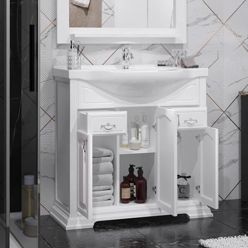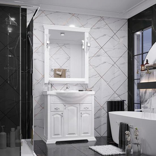 Коллекция РИСПЕКТО символизирует лучше традиции неоклассики в сочетании с необыкновенной функциональностью и простотой дизайна. Успех и уникальность коллекции формируется несколькими вариантами отделок, а также размерным рядом моделей и глубокой керамической раковиной. Завершенность стилю коллекции РИСПЕКТО придают сложные филенчатые фасады мебели. Несколько вариантов пеналов — узкий, стандартный (с бельевой корзиной) и двухстворчатый — удачно завершают комплектацию коллекции. Мебель оснащена механизмами плавного закрывания Hettich (Германия).