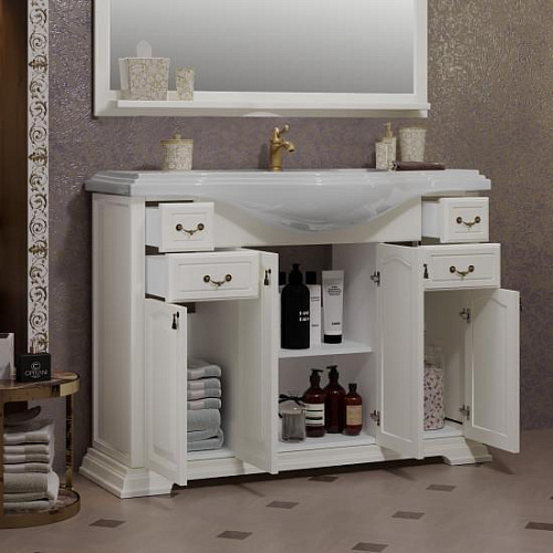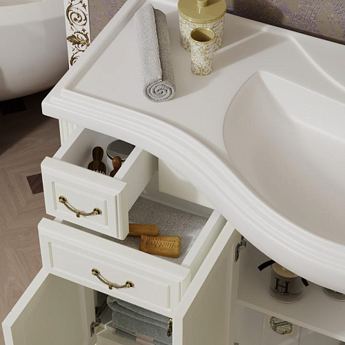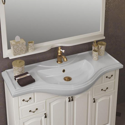 Коллекция РИСПЕКТО символизирует лучше традиции неоклассики в сочетании с необыкновенной функциональностью и простотой дизайна. Успех и уникальность коллекции формируется несколькими вариантами отделок, а также размерным рядом моделей и глубокой керамической раковиной. Завершенность стилю коллекции РИСПЕКТО придают сложные филенчатые фасады мебели. Несколько вариантов пеналов — узкий, стандартный (с бельевой корзиной) и двухстворчатый — удачно завершают комплектацию коллекции. Мебель оснащена механизмами плавного закрывания Hettich (Германия).