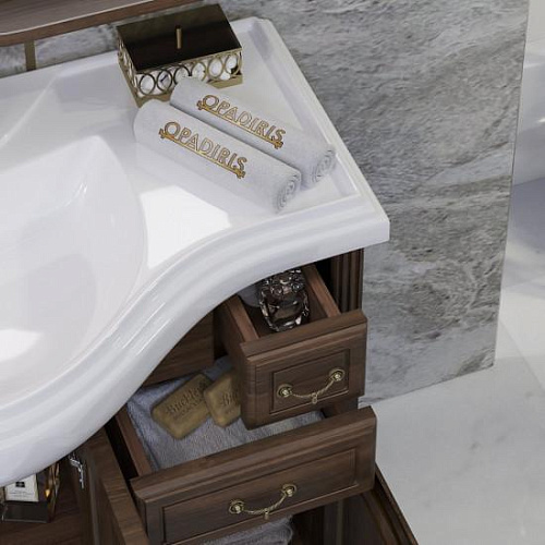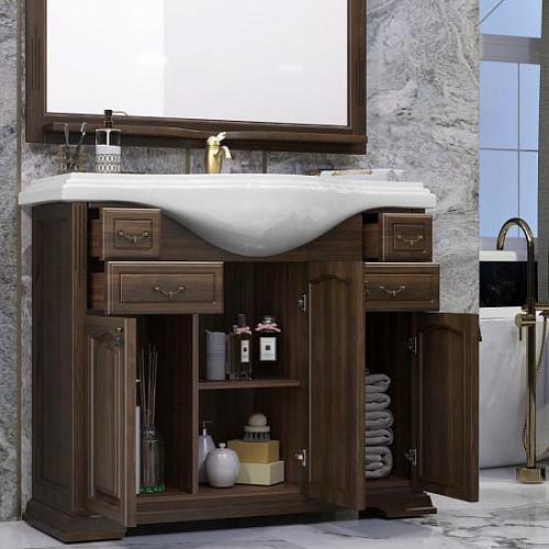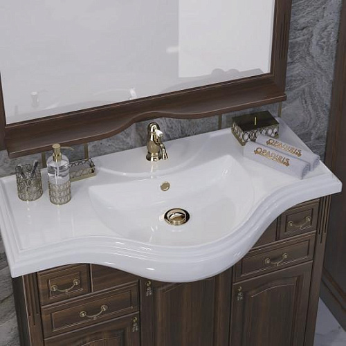 Коллекция РИСПЕКТО символизирует лучше традиции неоклассики в сочетании с необыкновенной функциональностью и простотой дизайна. Успех и уникальность коллекции формируется несколькими вариантами отделок, а также размерным рядом моделей и глубокой керамической раковиной. Завершенность стилю коллекции РИСПЕКТО придают сложные филенчатые фасады мебели. Несколько вариантов пеналов — узкий, стандартный (с бельевой корзиной) и двухстворчатый — удачно завершают комплектацию коллекции. Мебель оснащена механизмами плавного закрывания Hettich (Германия).