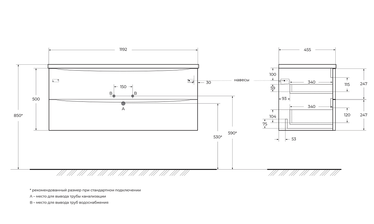 База BelBagno ACQUA-1200-2C-SO-BL под раковину 120х45 см, подвесная, Bianco Lucido (белый глянец)