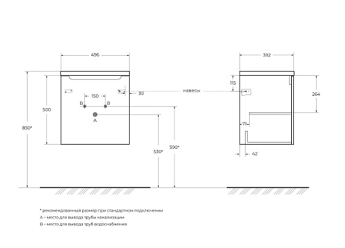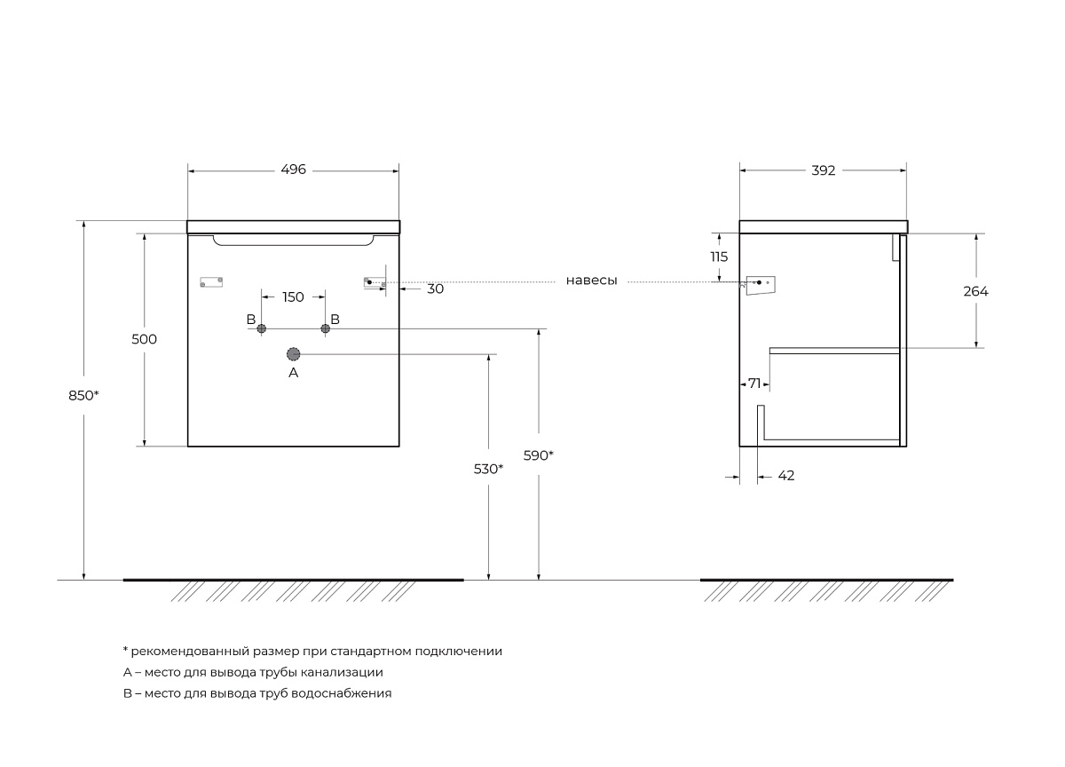 База BelBagno ETNA-500-1A-SO-RW-P-L под раковину 50х40 см, подвесная, Rovere Moro (темный дуб)