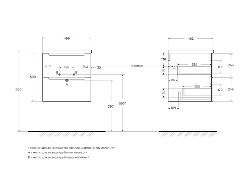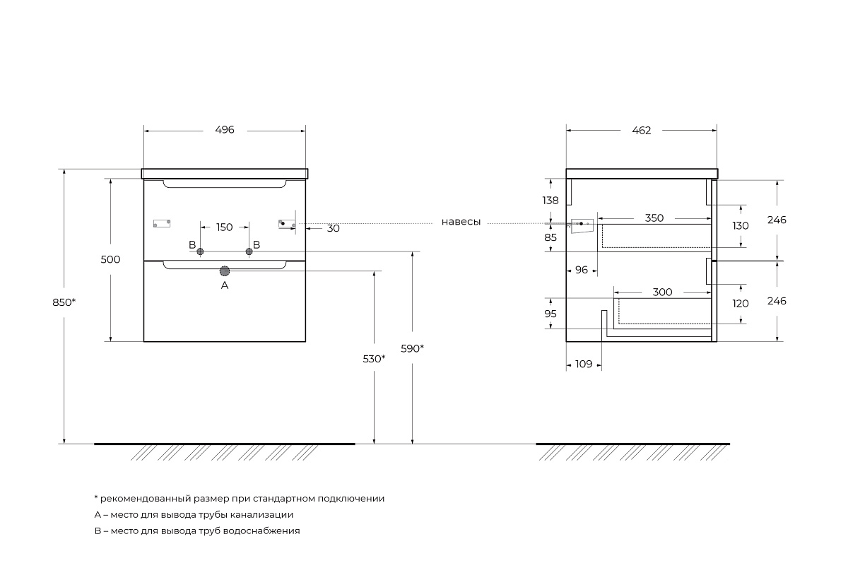 База BelBagno ETNA-500-2C-SO-BL под раковину 50х45.5 см, подвесная, Bianco Lucido (белый глянец)