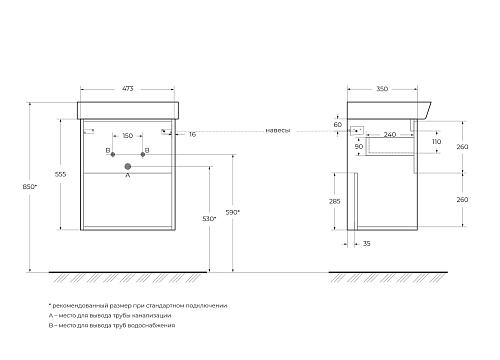 База BelBagno NEON-500-1C-SO-PB под раковину 50х35 см, подвесная, Pino Bianco (белая сосна)