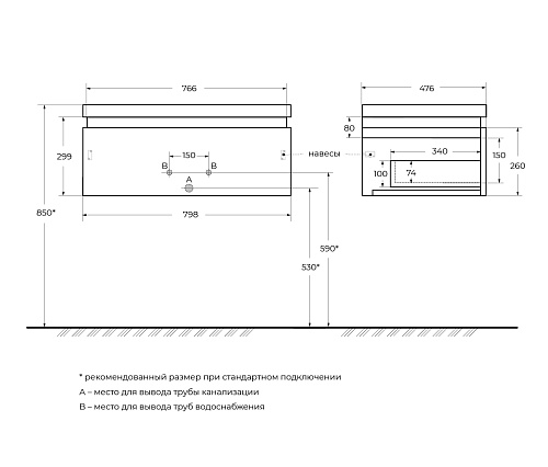 Тумба под раковину подвесная Cezares Slider SLIDER-800-1C-SO-NA-P